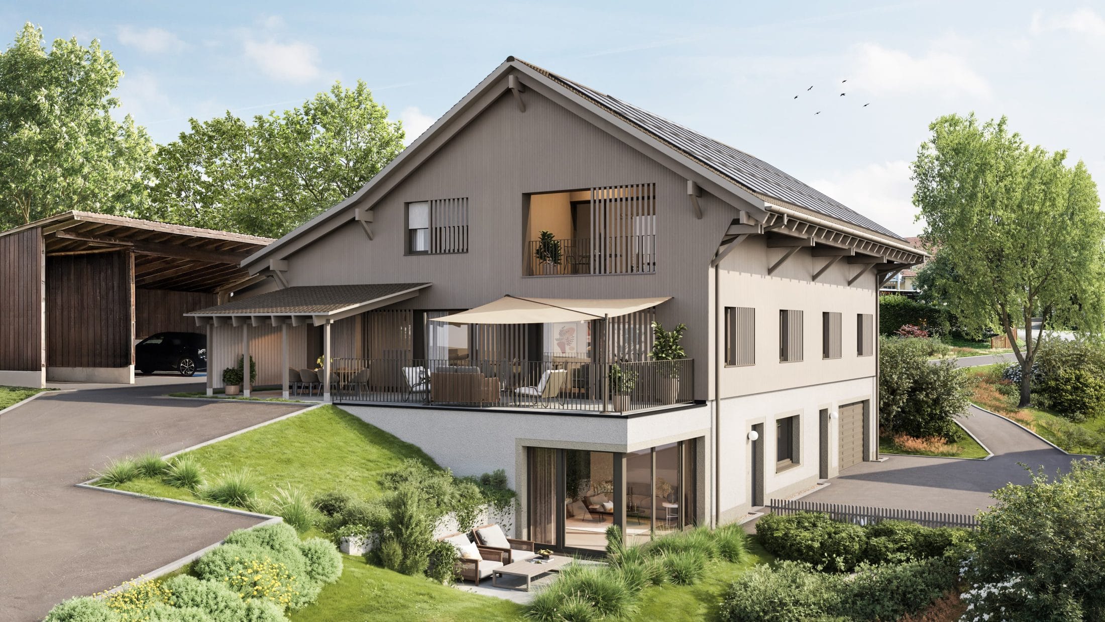 Im Ortsteil Seeb von Winkel entsteht mit AUREUM ein feinsinniges Neubauprojekt aus nur drei Eigentumswohnungen. Die Architektur setzt auf klare Linien und natürliche Materialität: Eine stilvolle Holzfassade, sorgfältig ausgewählte Materialien und grosszügige Aussenflächen schaffen ein Wohngefühl mit hoher Privatsphäre. Zwei 4.5-Zimmer-Wohnungen und eine 2.5-Zimmer-Wohnung überzeugen durch offene Grundrisse und zukunftsorientierte Technik – von der Photovoltaikanlage bis zur Luft-Wasser-Wärmepumpe für ökologisches, energieeffizientes Wohnen.